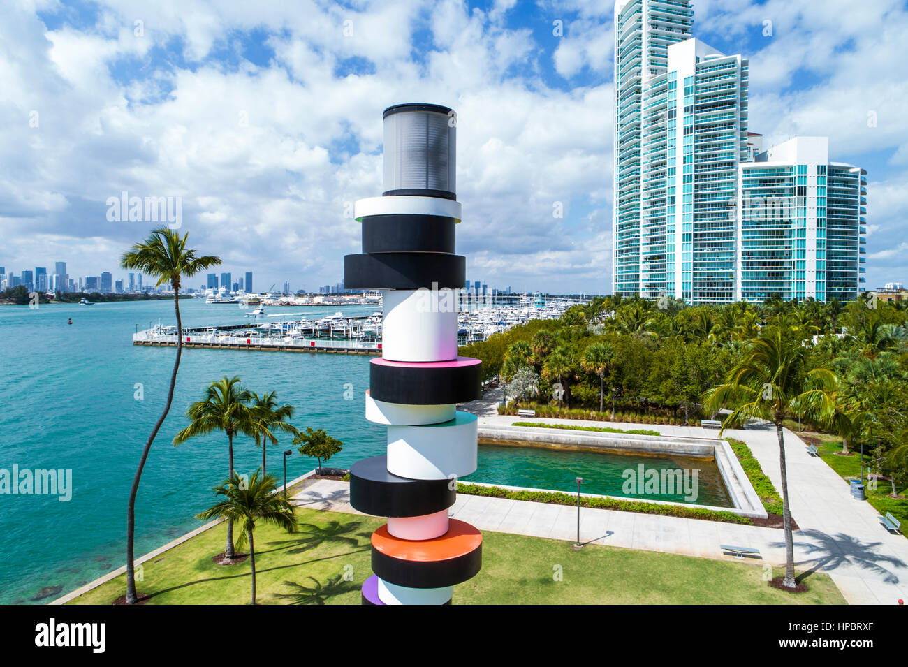 Miami Beach Florida South Pointe Park Biscayne Bay Obstinate Lighthouse Arte Publico Edificio De Gran Altura Residencial Murano Portofino Aereo Frente A La Costa Fotografia De Stock Alamy